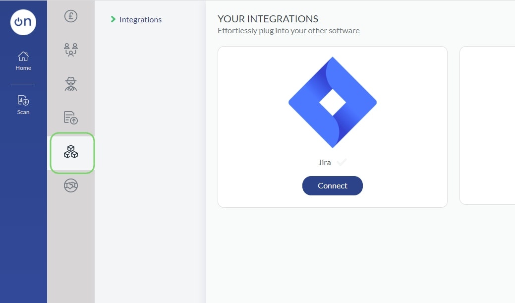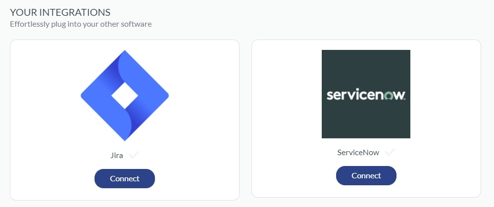 Click 'Connect' on the product you wish to integrate. At this time we support JIRA and ServiceNow.